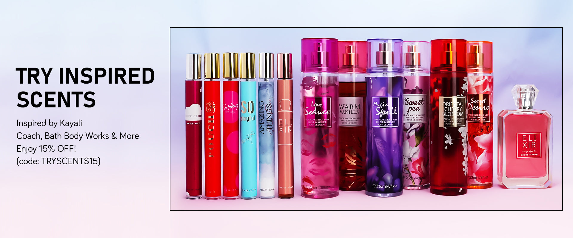 Enjoy 15% OFF. USE COUPON CODE: TRYSCENTS15